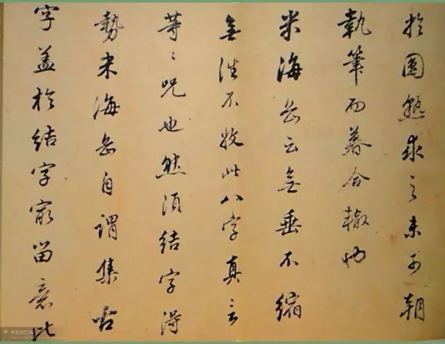 于圆熟求之,未可朝执笔而暮合辙也。米海岳云,无垂不缩,无往不收,此八字真言等等咒也。然须结字得势,米海岳自谓集古字,盖于结字最留意,