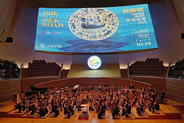 开幕式演出交响诗篇《丝路颂》十年磨一剑,由上海交响乐团与上海博物馆联袂合作,从馆藏的丝路主题文物中进一步汲取灵感反哺于创作之中,艺博融合,用音乐诠释了“和平合作、开放包容、互学互鉴、互利共赢”为核心的丝路精神。同一日与演出相呼应的小型文物特展,则展示了朱践耳《丝路寻梦》创作手稿及上博馆藏的十件丝路主题文物,让海内外嘉宾更直观地感受“丝绸之路”的历史文脉和意象之美。