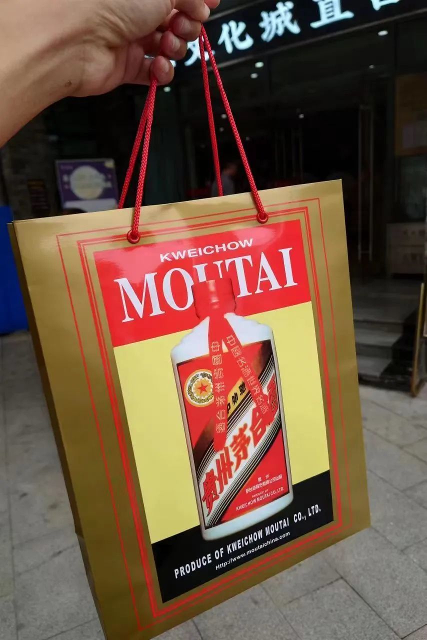 我提着这个袋子走在路上,本来还挺享受众人的目光,毕竟穿跟土老板样手上提着茅台,也是很正常的。走着走着,一路上不断有人追上来问我,这能直接买到酒吗?我呵呵一次次打开袋子,被问到最后,虚荣心变成了心虚,深感德不配位,索性把袋子收起来。那一刻我懂了!前两年上海乌中菜场和PRADA联名,许多人为了PRADA的纸袋,特别去菜场里买几把葱。