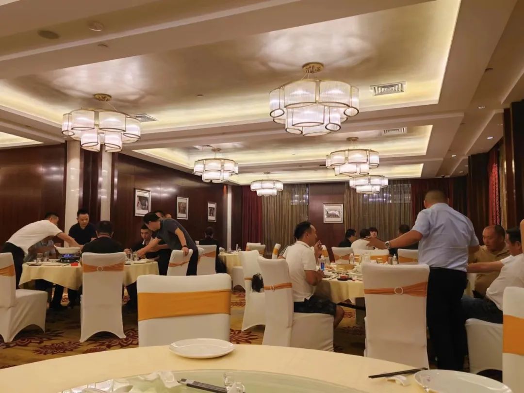 酒店二楼是中餐厅,有种广东大酒楼的风格,一个个大圆桌,现场氛围也是相当热闹,各种敬酒劝酒挡酒的画面不断出现,毕竟在茅台大酒店请吃饭,敬茅台酒,倍有面。