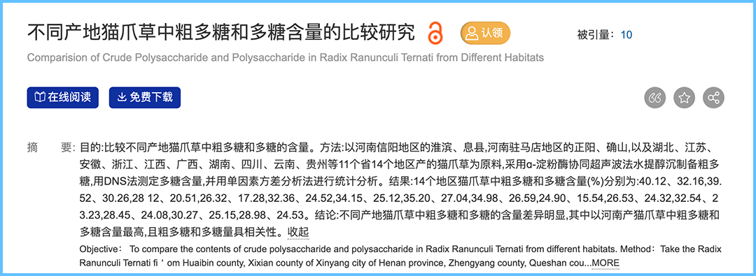 同时,它的功效也引起了国外专家的好奇。2017年发表在《LiverTox》上的文章显示,每日服用30mg的猫爪草提取物,也就是猫爪草多糖,就能有效发挥抗炎的功效。