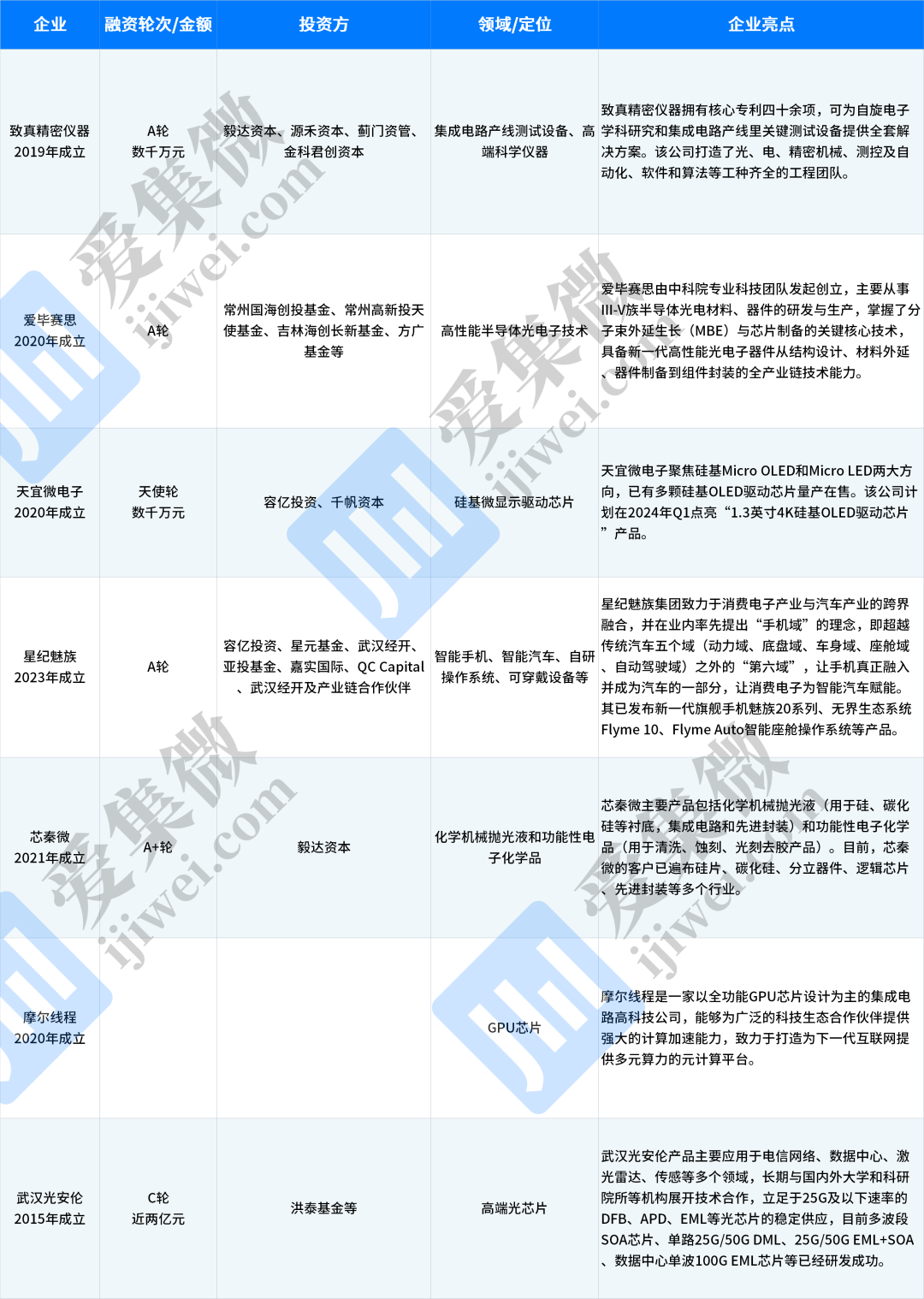 武汉光安伦、隐冠半导体、奕行智能等企业融资规模较高。