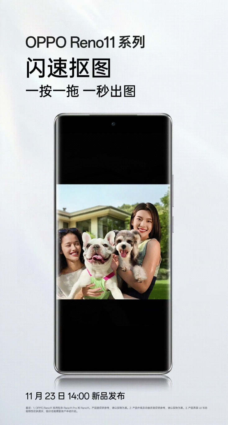 Reno11 系列支持全新「闪速抠图」功能