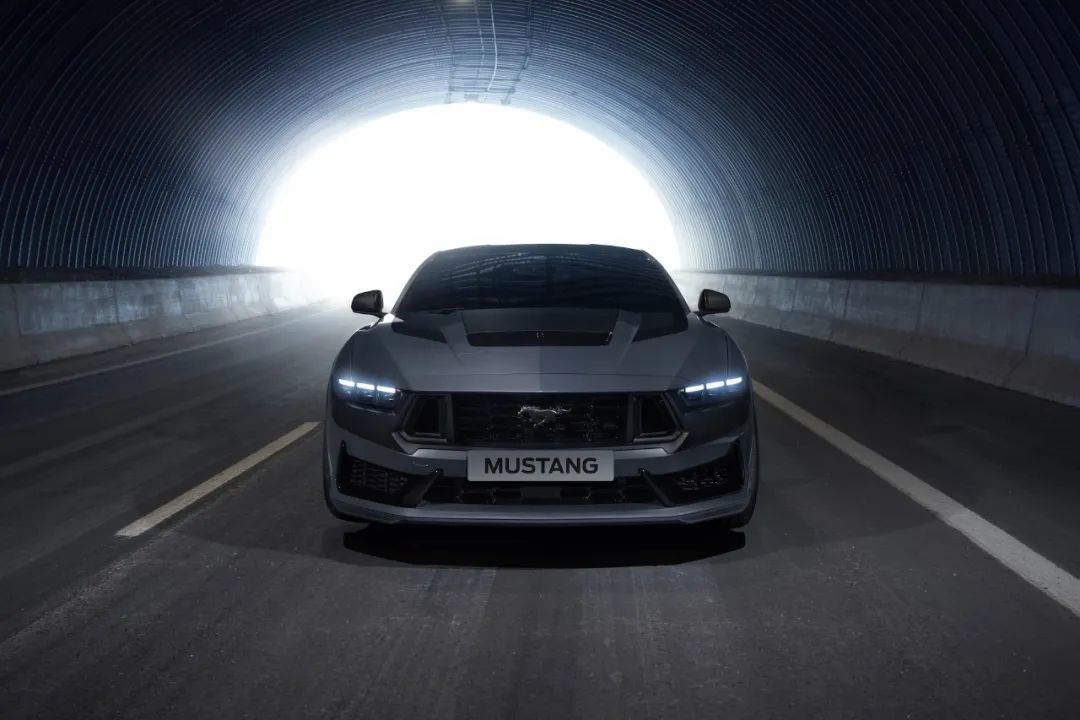 在广州车展的福特展台上,我们见到了21年来Mustang家族首个全新命名的高性能特别版——全新福特Mustang Dark Horse。这台即将于明年进入中国市场的特别版本,把Mustang关于性能的故事再次拉到了前所未有的高度,而它拿到的专属徽章,变成了一个正面的马头。“这是Mustang家族首次出现一匹面朝前方的马,”福特设计总部全球总监Piaskowski说,“它咄咄逼人,风格暗黑,从阴影中朝你迎面走来,胜券在握。”