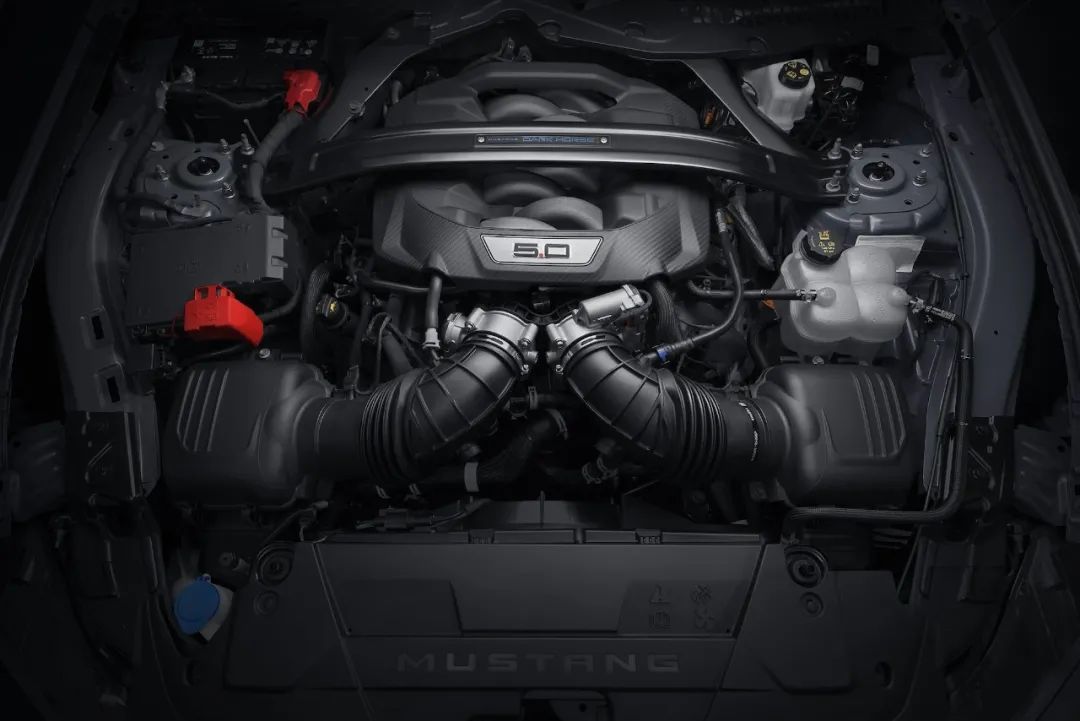 “心脏”永远是力量的源泉,全新福特Mustang Dark Horse使用的是全面进化升级的第四代5.0升Coyote™ V8自然吸气发动机。这台发动机的强大除了已经快绝种的V8引擎之外,在进气上了有了特别的设计,所谓“干得多,吃得多”,一台8缸的自然吸气发动机在工作时对于进气的需求肯定是超乎寻常的,这台发动机设计了独立的双节气门进气道,前格栅上的双进气口设计正是为了与之配合,可以大幅提升进气效率。