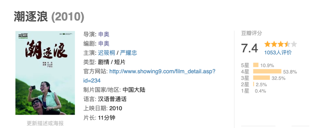 进入广告行业以后,他也依然坚持利用空闲时间拍摄短片。其中,短片《潮逐浪》在各类迎接中获得认可。在一次广告项目中,他与宁浩相识,后来在对方的建议与支持下,申奥推掉了赖以生存的所有广告商单,孤注一掷地离开舒适圈,开始筹备长片。