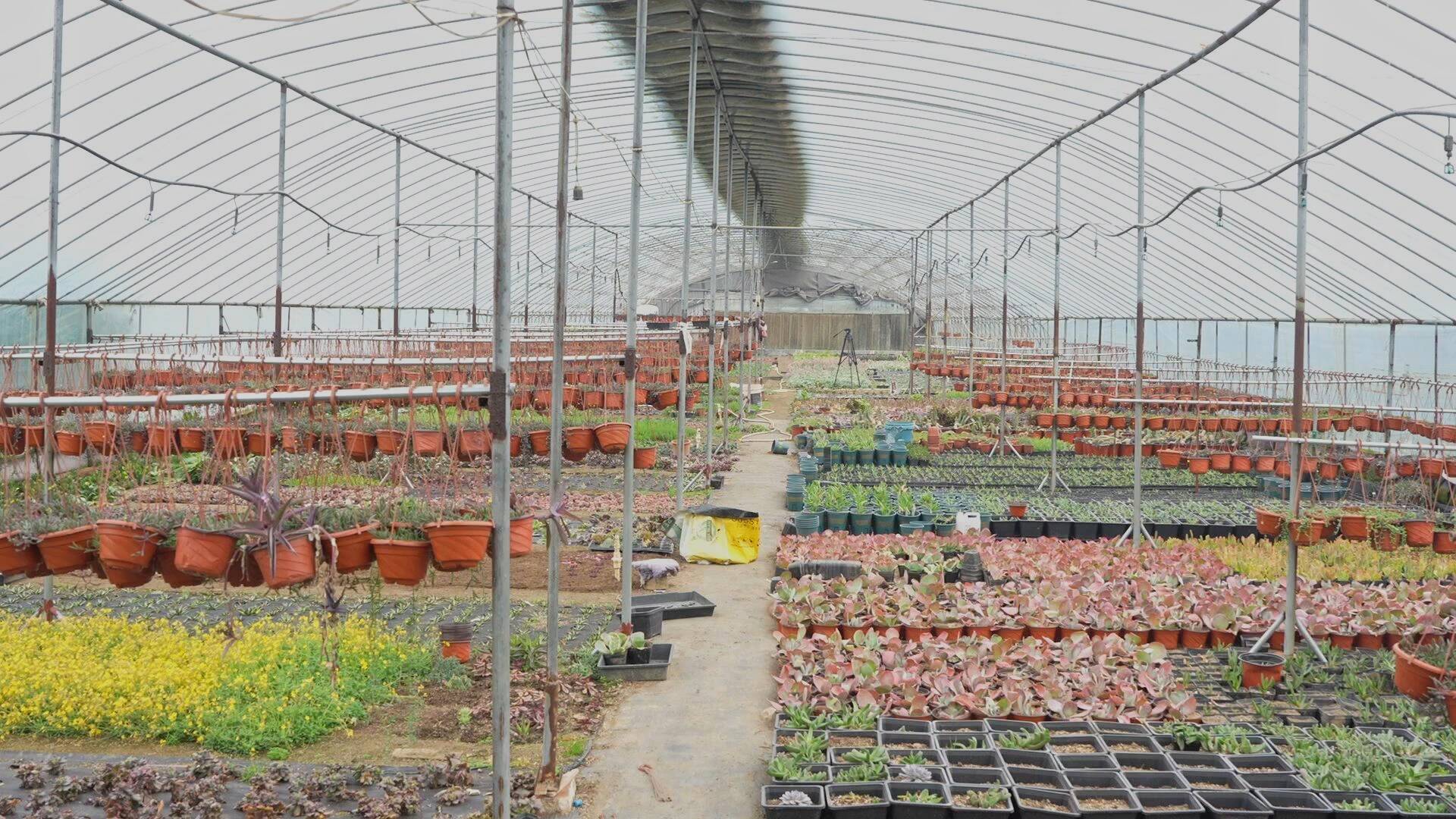 胡世红所在的多肉基地,拥有多肉品种500多种,有叶子像熊掌的熊童子,有全身缠丝的拉丝卷绢,有裹着白裙子的白美,每种品类都独具特色。除了培育这些植株,这个多肉基地还利用多肉和器件的搭配,研发新的品种。