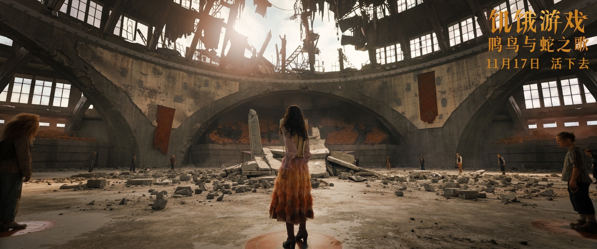 《饥饿游戏:鸣鸟与蛇之歌》(以下简称《鸣鸟与蛇之歌》)或许会让一心想要看“大男主”“大女主”“爽片”,以及想要看大场面“血浆片”的观众小有失望:这部两个半小时的前传电影,“饥饿游戏”在三个篇章片段里仅仅占据了不到一个小时的时长。