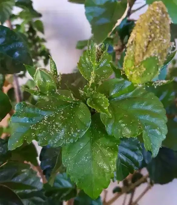 蚜虫是一种以植物的汁液为食的小害虫,在户外的植物上就特别容易看到,就比如常见的月季花、扶桑花和木槿花等植物,这类植物会频繁的感染蚜虫,这些蚜虫并不会直接将植物杀死,而是会在植物的花苞和叶子上不断吞食植物的汁液,导致植株长得比较瘦弱,而且开花会比较难看。