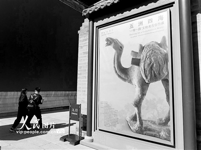 在故宫博物院神武门展厅进行的“五洲四海——‘一带一路’文物考古合作展”中,一幅巨幅海报很是吸引人眼球。它就是从西安隋墓出土的酒神纹驼囊陶骆驼,又名“醉拂菻驼囊陶驼”。