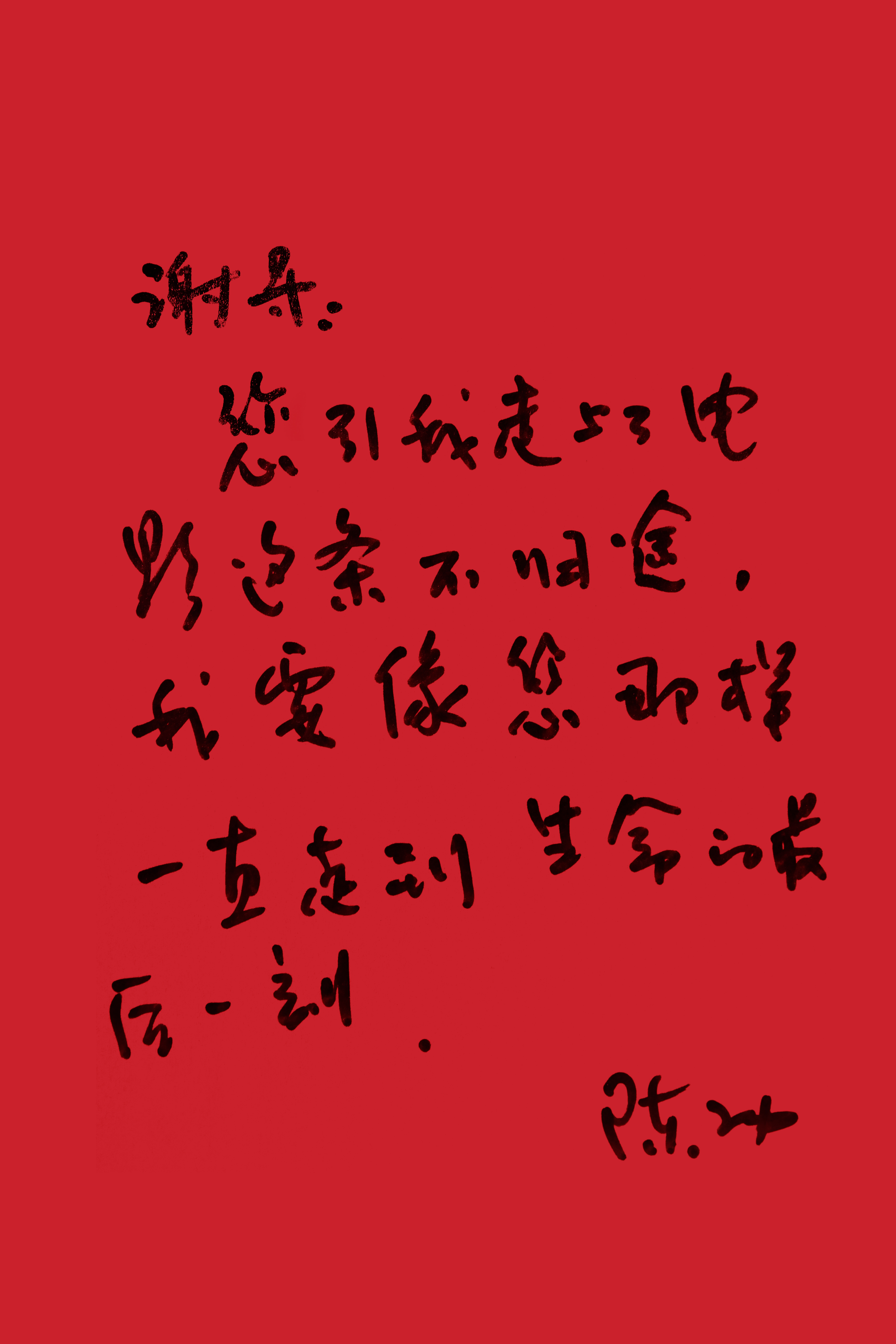谢导您好!您改变了我的命运,所以我今天能够坐在这里。如果今天能够再跟您交流的话,我想我可以问出更好的问题,可能就不像当年那么幼稚,那么傻傻的了。很想您!