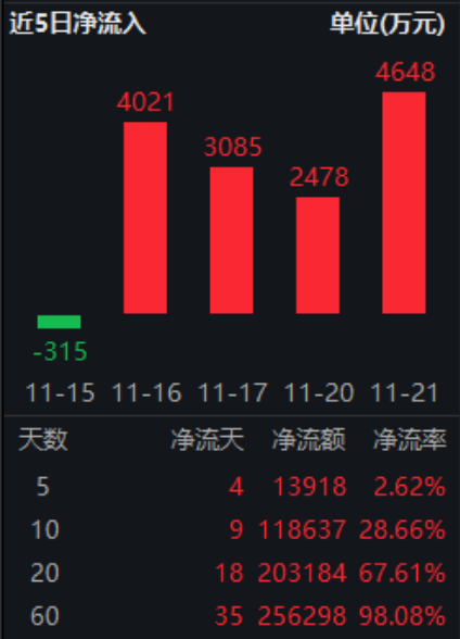 截至11月21日,科创100指数ETF(588030)近20个交易日获超20亿元资金净流入,最新份额增长至51.96亿份,最新规模53.44亿元,双双再创新高,居同标的产品第一。目前,博时上证科创板100ETF联接基金(A类:019857;C类:019858)已正式发行。