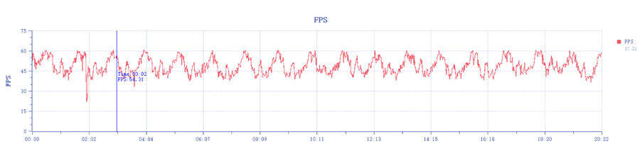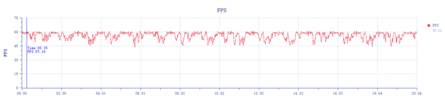 同样的测试方式,将游戏画质下调一级,选择【高】画质60帧的模式,游戏平均帧率就可以达到55.93FPS,流畅度得到了很大的提升。