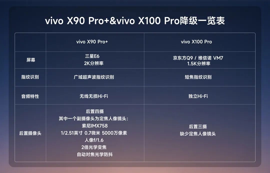 为了验证黄总这个说法,我也仔细去研究了下,最后发现在一些常见的地方确实是有所升级,但在其他参数上也有不少阉割。比如三星E6 2k没了,亲儿子iQOO刚出的iQOO 12 Pro都用上E7 2k屏,自己用的却还是国产1.5k屏幕。另外,超声波指纹也没了,连无线无损Hi-Fi也砍了,换成了独立Hi-Fi,就连50mm大光圈镜头也没了。所以你要说它「升杯」,我是不太认同的。