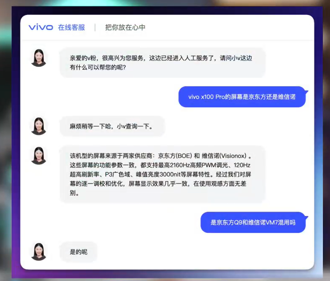 说到屏幕,这两部手机选择屏幕的厂商,也成了用户关注的焦点。小米14 Pro用的是TCL的华星光电,vivo X100 Pro的屏幕是京东方Q9 8T和维信诺 VM7 8T混用,官方客服的说法是参数一致,显示效果一致。所以,你买到的是哪种屏幕就得“抽奖”了。