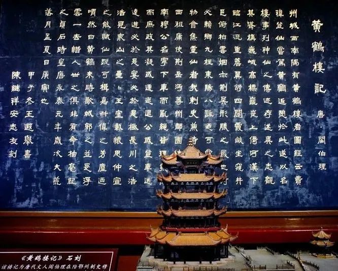 《黄鹤楼记》是作者阎伯理于唐永泰元年(756)受鄂州(今武昌)刺史穆宁之命撰写的。文中一记仙人传说,二记黄鹤楼样貌,三记穆公登楼之状。文章开篇便提到黄鹤楼的地理位置在城的西南角,随后写到黄鹤楼“因仙”得名的传说故事。这段传说记载于《神仙传》《述异记》等典籍中,点明黄鹤楼是“因仙”而得名。接着写道“观其耸构巍峨,高标巃嵸,上倚河汉,下临江流,重檐翼馆,四闼霞敞,坐窥井邑,俯拍云烟,亦荆吴形胜之最也”,描写了黄鹤楼高标巃嵸的雄伟气势和白云缭绕、云仙雾罩的优美环境,是当时荆吴形胜最佳的游览胜地。