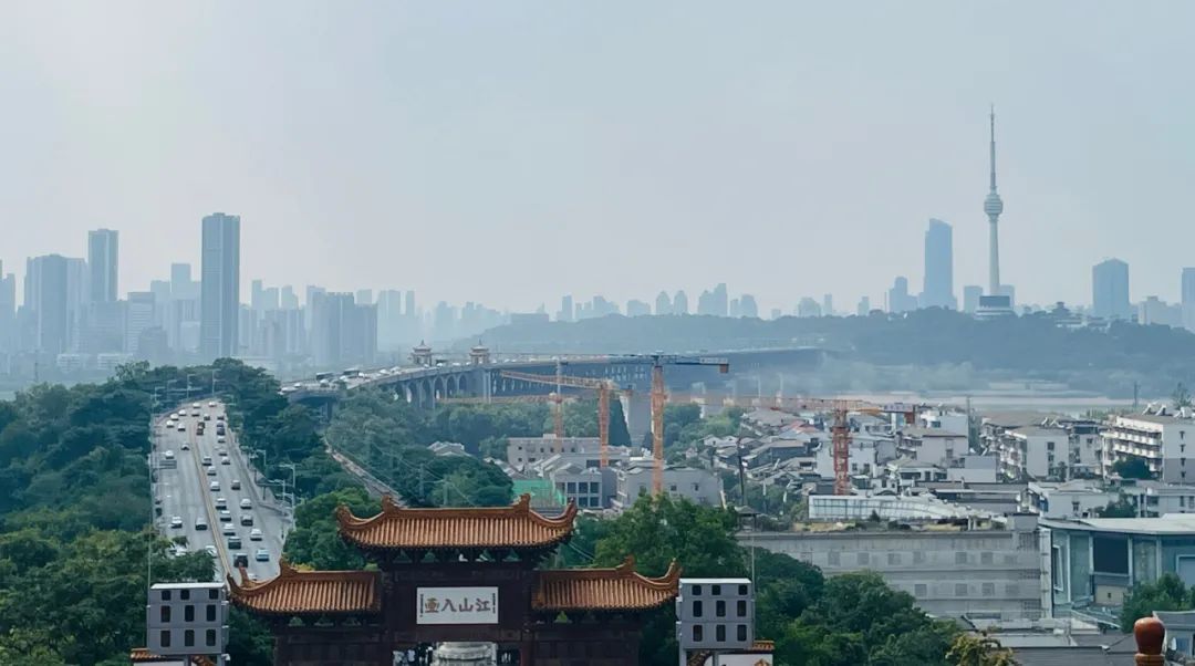 黄鹤楼与蛇山脚下的武汉长江大桥交相辉映。
