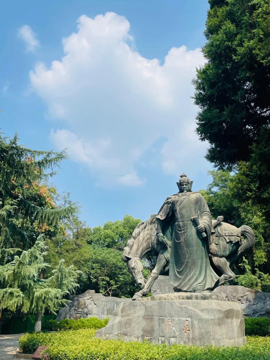 从黄鹤楼下来后,我们继续朝东门的方向前行,转头一看,黄鹤楼的正东方一楼上书“席卷乾坤”四个大字,雄阔苍茫,寓意深远。继续前行,先后到达千禧吉祥钟、白云阁、牌坊、岳武穆遗像亭、岳飞广场、黄鹤楼公园等景点。