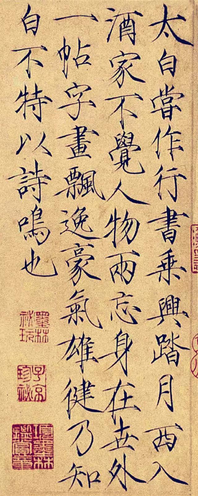 “太白尝作行书,‘乘兴踏月,西入酒家,