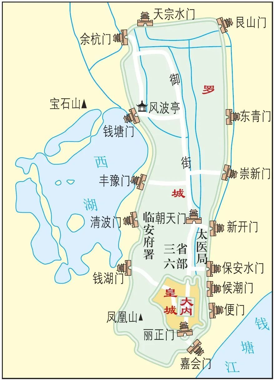 皇城位于外城南部,呈矩形,南门连接外城的丽正门,四周建红墙,又称“萧墙”,城内有太液池(今北海、中海)。