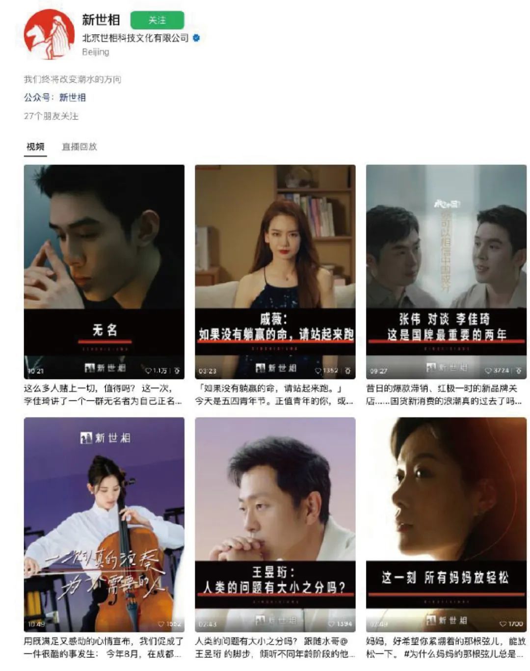 像@一条、@星球研究所等公众号+视频号兼具的达人,在微信生态的双触点累计粉丝超过百万,可以在长内容和短视频上双重发力,为品牌带来更为多元的、持续的社交传播。