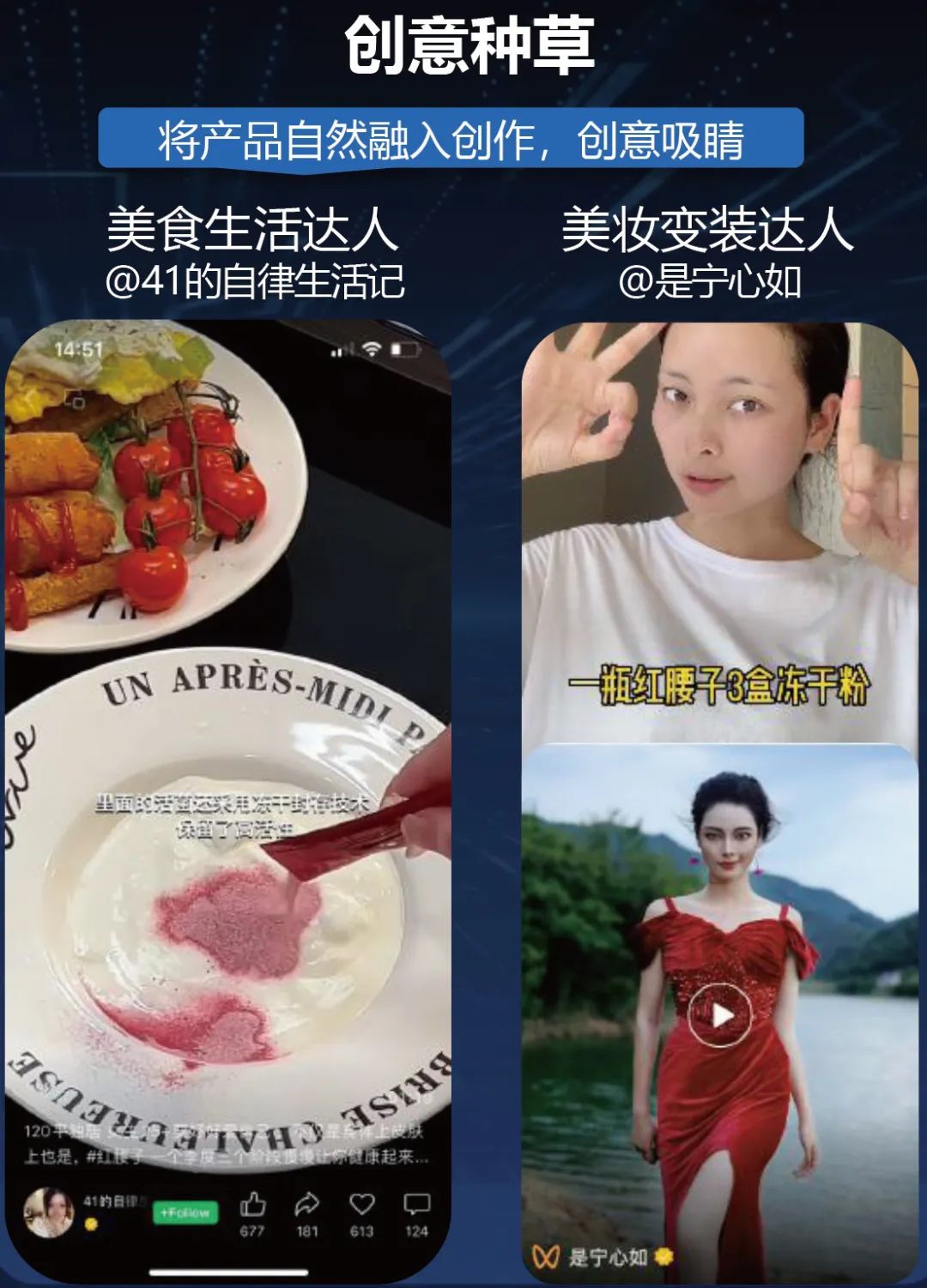 资生堂通过视频号互选对旗下的王牌红腰子精华和新品红腰子冻干粉进行了推广和加热。在种草环节,通过产品评测和创意种草两种方式,功效深度展示与创意吸睛双管齐下,种草达人、生活达人、变装达人对产品进行差异化的诠释。因此,借助多元形式的内容与链路,品牌可以在视频号找到与不同产品周期相契合的营销方案,甚至找到第二增长曲线。