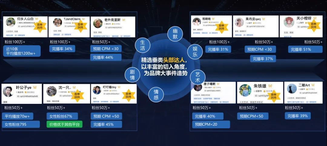 基于视频号用户更倾向观看生活方式、知识科普类视频的特点,视频号内@十点人物志、@吴晓波频道等知识分享类达人和公转视达人多样化达人矩阵可以帮助品牌多视角解读品牌故事,引发共鸣,之后还会根据不同达人的内容创作持续助推优质素材,以期有效渗透目标人群。