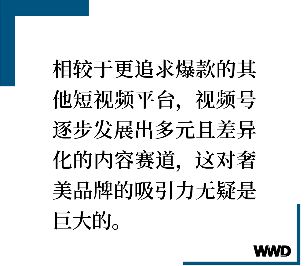 奢美品牌走进视频号,一方面可以有效地传达品牌的价值观,另一方面,通过视频号的平台互选机制,可以找到适合的达人,冲破地域、圈层的限制,进行持续、广泛地发声,触达并转化意想不到的潜在客群。