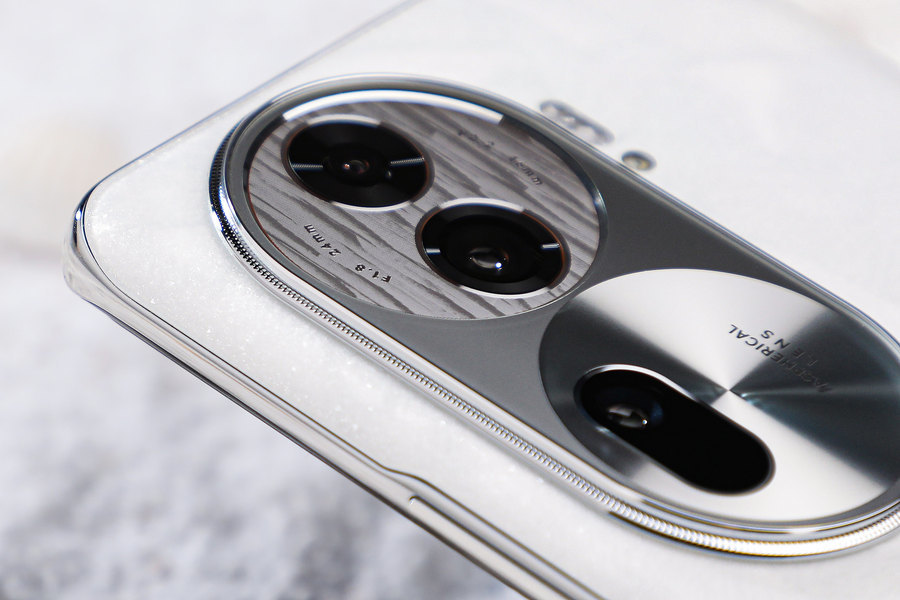 OPPO Reno11系列的精致除了宝石元素的后盖外,在设计细节上也有许多的小巧思。比如镜头模组中的冰川纹宝石圆盘,在不同角度下可呈现如同珠宝般的光泽,显得相当优雅别致。而镜头模组外围更有和高端腕表一样的巴黎饰钉圈装饰,这708颗饰钉装饰圈让手机看上去更加光彩夺目,如此丰富的细节使得手机的精致感与高级感并存。