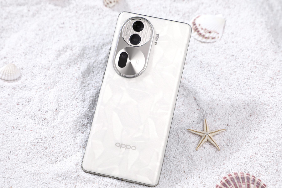 其中“月光宝石”配色采用了OPPO独创的光韵宝石工艺,使得手机后盖就像星光、珠光和月光融合在一起,仿佛在掌心中流淌,再现了月光宝石般的灵动光彩。这样的设计不仅赋予了这款手机在外观上更具吸引力的视觉效果,同时也传达出了一种神秘、高贵的气质,更为我们带来了别样的触感体验,摸起来并非像是宝石那样光滑,而是有微微的磨砂质感,更耐刮之余也不易沾染指纹。手机后盖在独特工艺下散发出极为丰富灵动的光彩,同时让整机看上去非常高级却不单调,轻轻旋转手机就能展现出星光、珠光和月光三种不同的光泽。