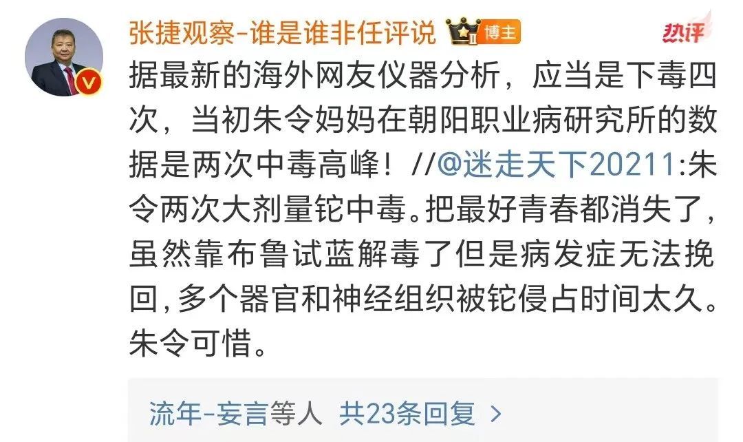 1994年9月,妹妹朱令又惨遭投毒,毒物是“铊”。