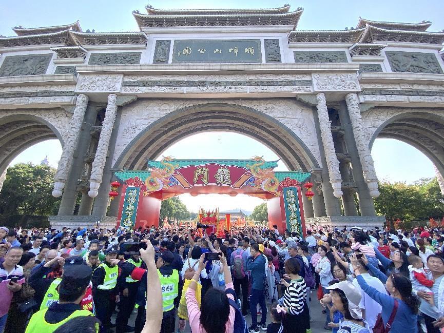 “蛟龙”竞渡,百龙巡游。11月26日,“行运一条龙”祈福巡游活动在苏岗龙母庙隆重举行,近1200人的巡游队伍,集结龙母仪仗、五龙太子、岸上龙舟、人龙舞、八音锣鼓柜、龙舟说唱等10余个方阵,环绕顺峰山,吸引数万名市民游客近距离围观参与,共同“行龙运,接龙福”,沉浸式体验“一条龙”的民俗文化。