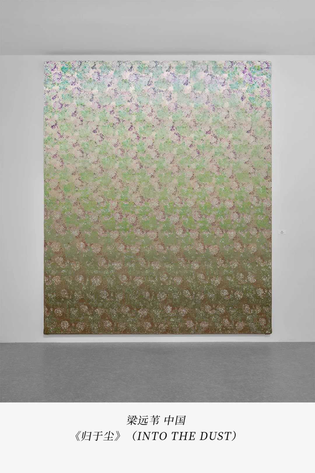 梁远苇擅长借助艺术来表达织物肌理的美妙。布料是她长期以来的创作元素,通过厚涂油画材料塑造立体的肌理,加之薄涂油画材料产生出复杂的透叠的色彩效果。《归于尘》以1949年的经典迪奥小姐礼服裙上的花朵为灵感,提取裙面的颜色,用渐变的色彩画出归于尘土的花朵,亦如香水的气味会随着时间的流逝逐渐消散。