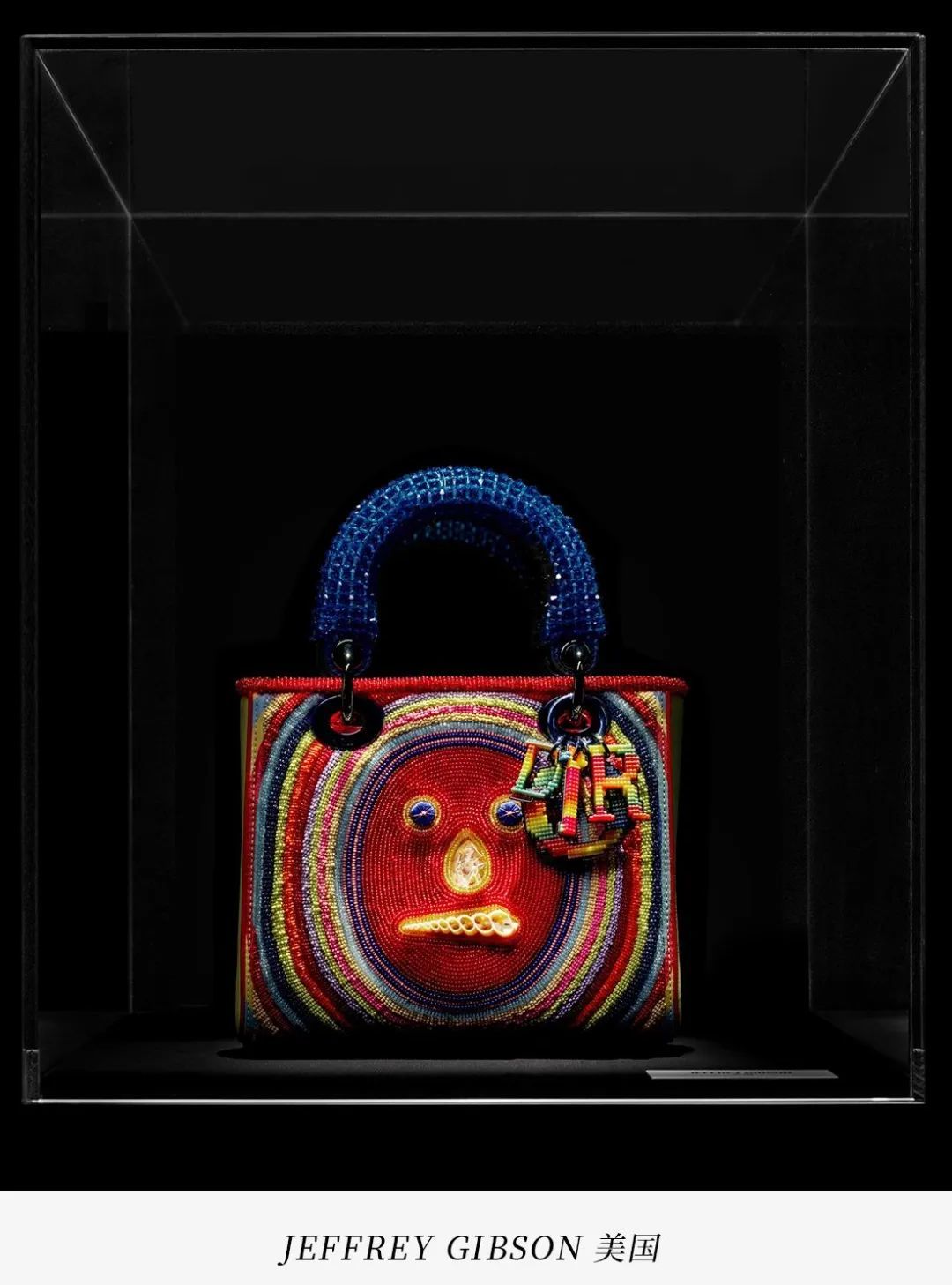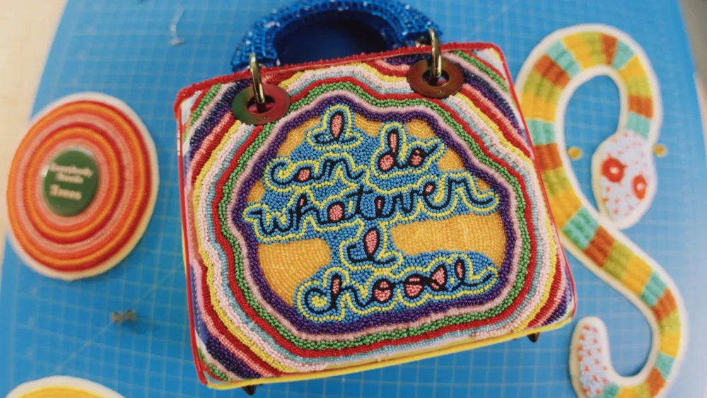 他的艺术中将美洲原住民传统手工技艺与大胆的前卫波普美学相结合,呈现出几乎迷幻的作品。这位多才多艺的艺术家善于运用混合媒介,包括绘画、雕塑、版画、织物和影像等,创造出独特的视觉语汇。在“DIOR LADYART#8”限量合作系列中,JEFFREY GIBSON在两款全新的LADY DIOR手袋上展示了他标志性的串珠技艺。
