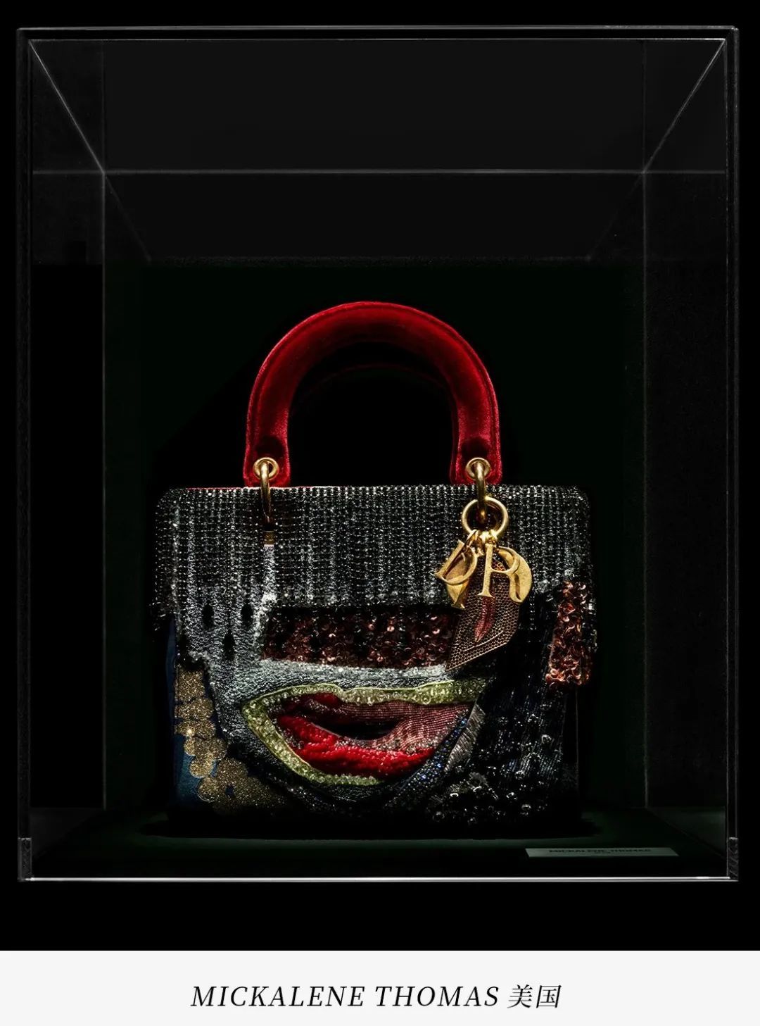 MICKALENE THOMAS从她的个人系列作品“TETE DE FEMME”中汲取灵感,并将其中的元素运用到迪奥标志性的LADY DIOR手袋上,将它们变身为一幅画作。手袋的外观不再采用标志性的藤格纹图案线条,而是通过精湛的具象刺绣重新演绎,展现出令人陶醉的效果。这款引人入胜的LADY DIOR手袋完美地融合了MICKALENE THOMAS大胆的创新设计和迪奥工坊的高超工艺,其闪耀程度在亮片、串珠和莱茵石的衬托下更加夺目。