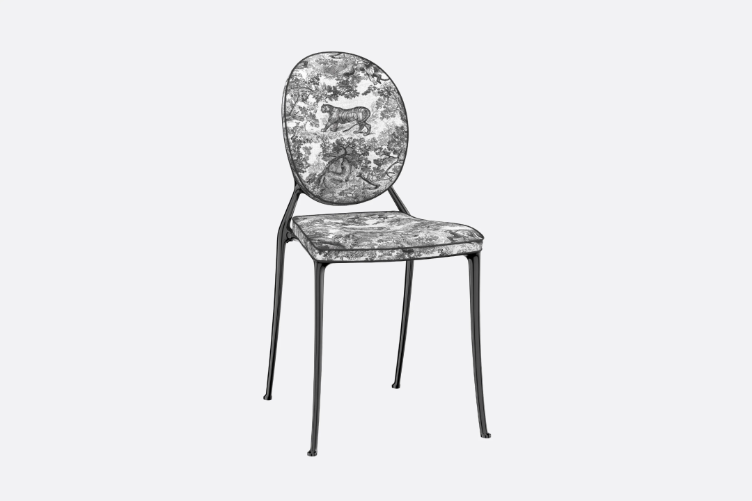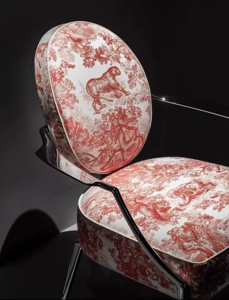 PHILIPPE STARCK极具新意地创作了迪奥小姐甜心(MISS DIOR SWEET)椅,将经典茹伊印花以极简的方式用于椭圆背椅设计之上,彰显别具一格的优雅风格与巧思妙想。