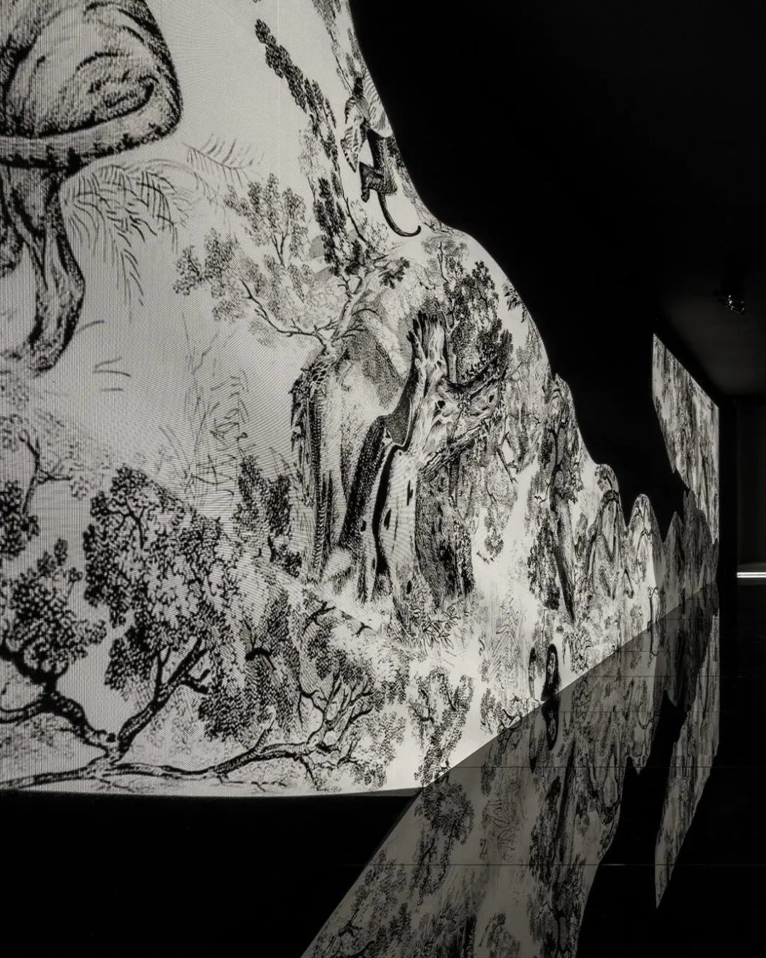 本次展览携影像和音乐装置营造沉浸式体验。其中,音乐装置由声音漫步乐团 (Soundwalk Collective)* 的 Stephan Crasneanscki与 Simone Merl特别为迪奥打造。轻柔的音乐旋律与屏幕上放映的影像一起营造了一个似梦似幻的迷离空间。
