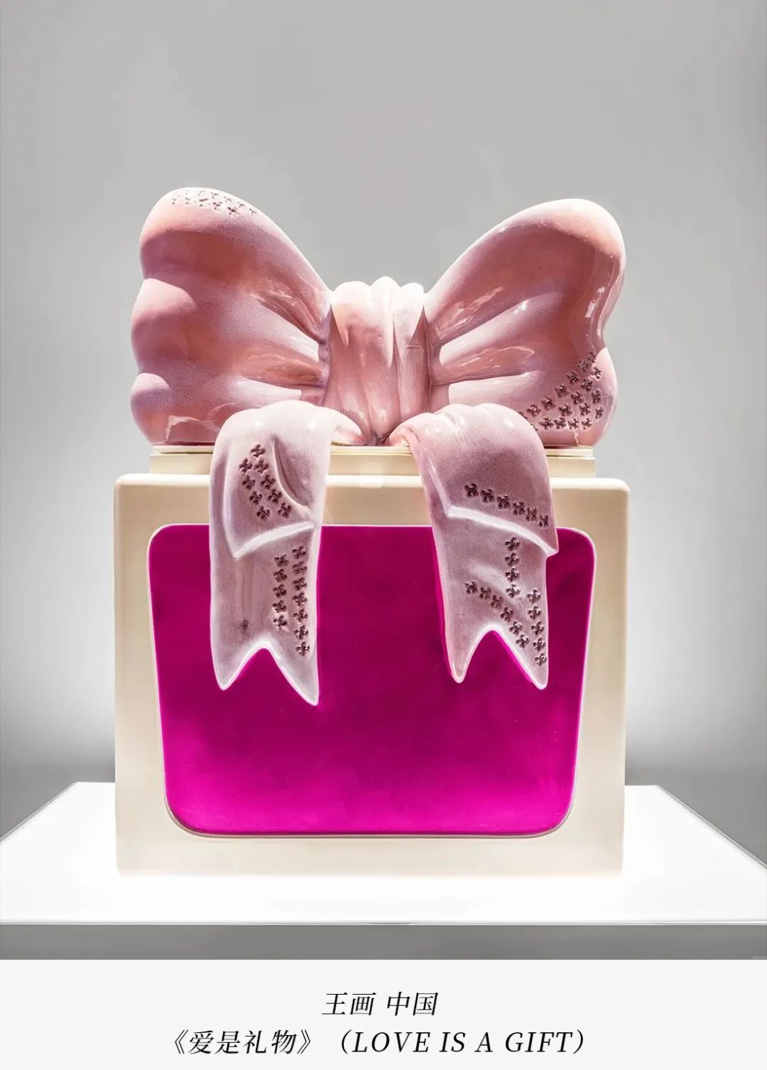 在《爱是礼物》中,中国艺术家王画歌颂女性的温柔坚韧以及无私奉献的力量。Miss Dior迪奥小姐香水瓶的丝带成为这件陶瓷雕塑的核心元素。艺术家通过运用陶瓷这一材料,同时展示了坚硬、柔软与柔美曲线,塑造了象征着姐妹情谊与女性力量的符号。