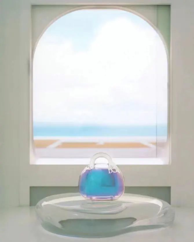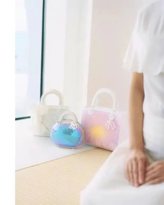 最后一款手袋则小巧玲珑,仿佛被包裹在象征时空的虹彩气泡中。手袋上的“DIOR”字母吊饰中的“O”上,饰有MARIKO MORI的签名,这是她巨型雕塑装置作品“RING: ONE WITH NATURE”的缩小模型。同时,每款手袋的内衬都设计得别具一格,以粉色点缀,为手袋增添了令人惊喜的细节。