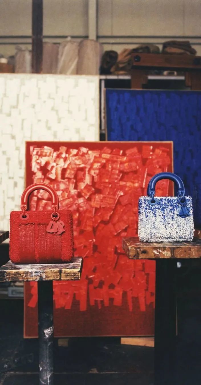 作品融合了绘画和行为艺术,灵感来自于他对姿态和手势的灵活掌握,将身体和行动的轨迹作为独立的画布元素,深入探索生活与创作行为之间的内在联系。他在经典的LADY DIOR手袋设计中运用了实验性手法,将优雅的风格与精湛的工艺相结合,呈现出四款重新演绎的艺术杰作。
