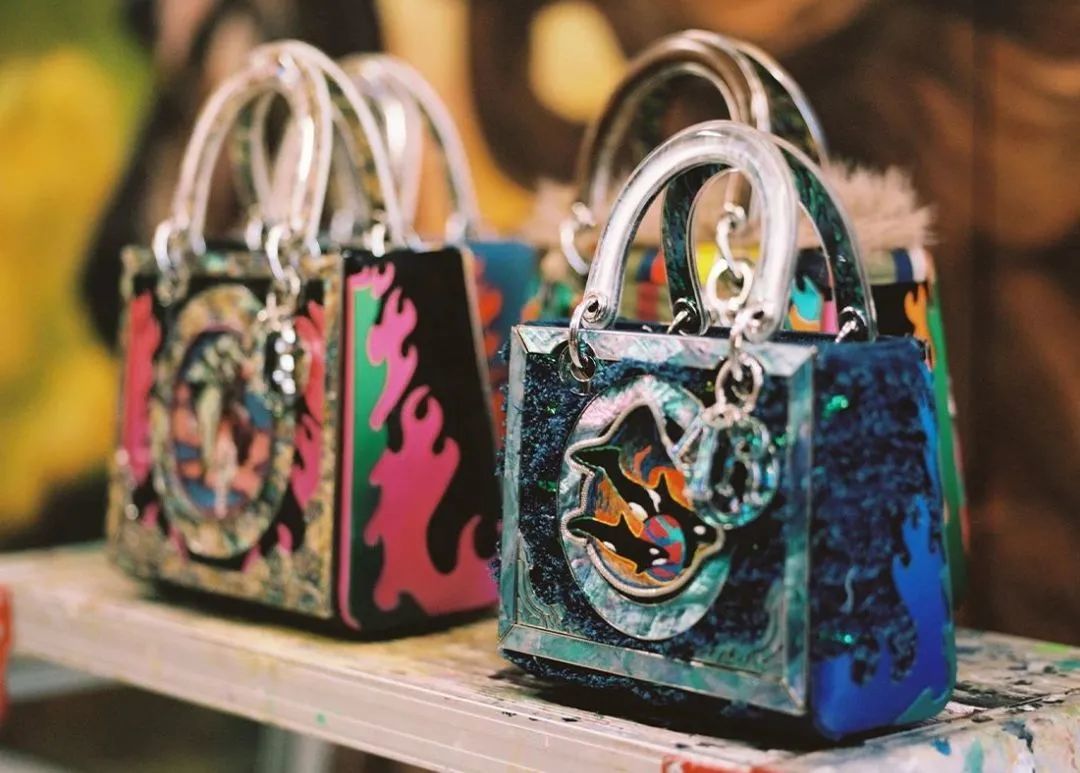 这两款手袋使用了黑色串珠来替代传统的缝线,手袋的整体与吊饰都点缀着小型金属面具,增添了独特的韵味。第三款设计采用了法琅贝壳制作的可替换手柄,使LADY DIOR手袋更加独具魅力。值得一提的是,LUDOVIC NKOTH将这些作品的内衬变成了一个秘密的画廊,展示了他名为“SYSTEM”的系列作品,为这次合作注入了更多深层次的意义。