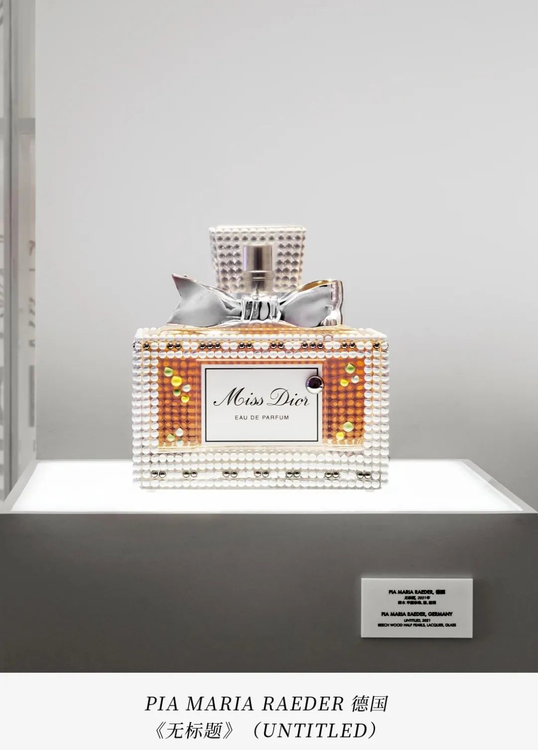 PIA MARIA RAEDER选用自己钟爱的榉木材料,制作了两件Miss Dior迪奥小姐主题雕塑。其中一件是由柱状模件组装而成的礼服雕塑,另一件为漆光木珠连缀而成的香水瓶。这两件作品从两个侧面诠释女性气质,同时展现香水的感性力量。