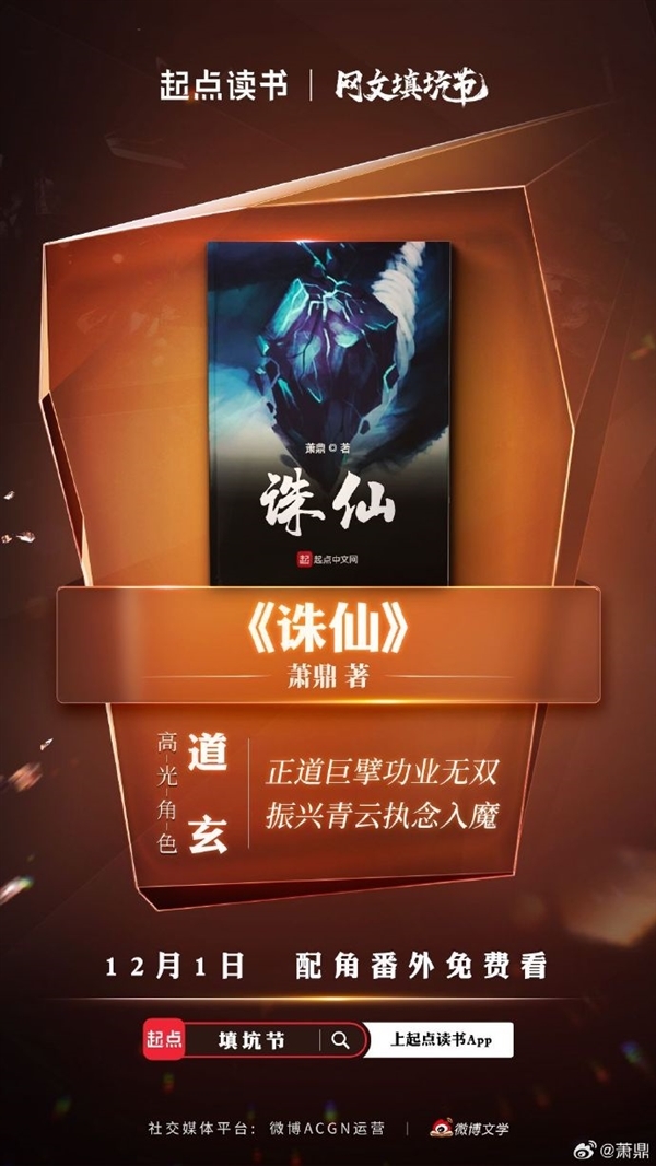 他写道:“感谢大家对《诛仙》的喜欢与关注,这次来#网文填坑节#只办一件事:给道玄写个小番外,12月,记得来起点。”