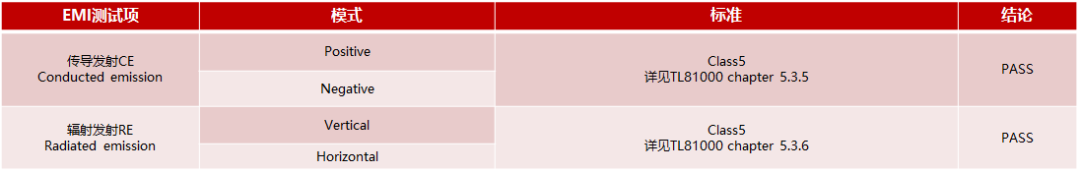 目前已通过大众汽车VOLKSWAGEN TL81000:2021-06 《Electromagnetic Compatibility of Electronic Components for Motor Vehicles》测试标准中的相关测试要求,并以最高等级的要求通过每项EMC测试。以下内容基于大众相关标准进行介绍。
