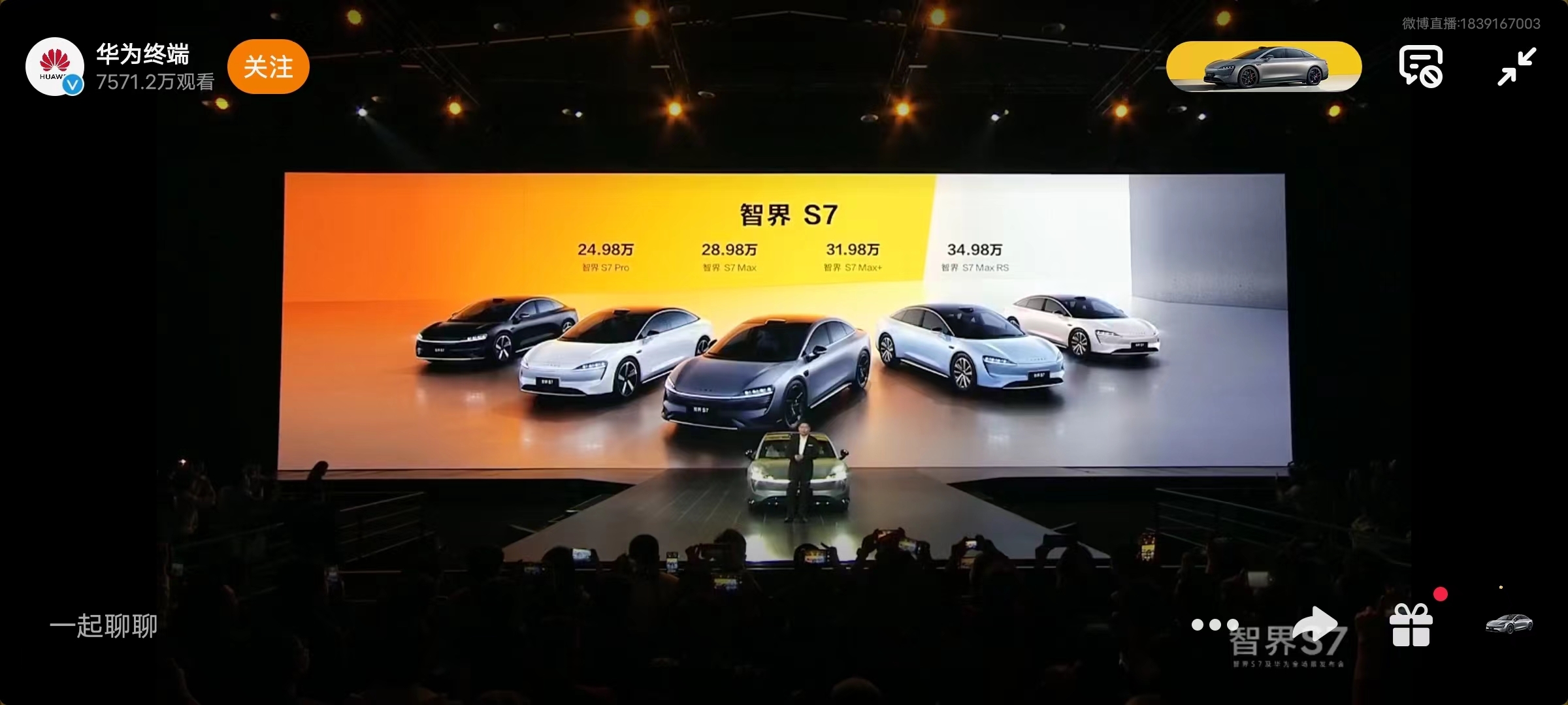 鞭牛士 11月28日消息,今日下午,智界S7及华为全场景发布会上,华为常务董事、智能汽车解决方案BU董事长余承东宣布布智界 S7 汽车正式发布,提供智界 S7 Pro、智界 S7 Max、智界 S7 Max+、智界 S7 Max RS 四款车型。价格方面,智界S7 pro,24.98万元;智界S7Max,28.98万元;智界S7 Max+,31.98万元;智界S7 Max RS,34.98万元。