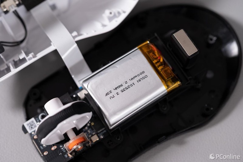 最后再看看内置的800毫安时锂电池,大容量因此拥有不错的续航能力,根据官方介绍,1KHz回报率下满电量可连续使用续航约160小时,如果你开核成功,据说有300小时的超长待机!