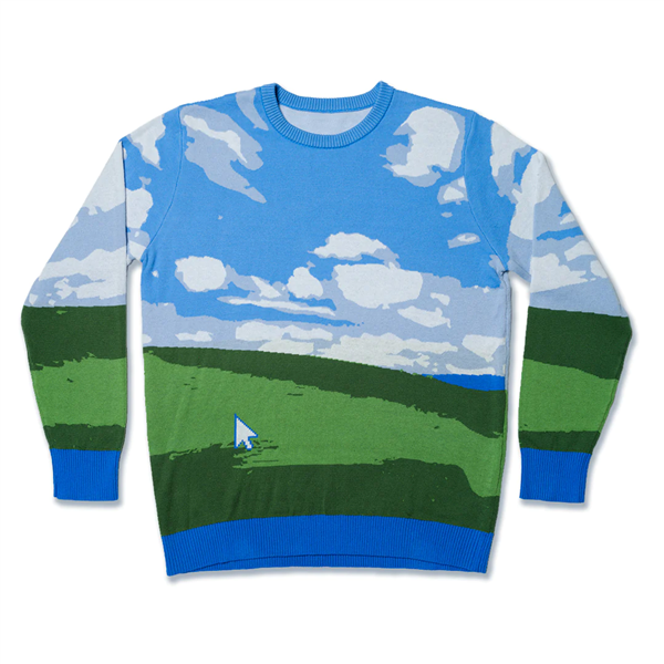 快科技11月29日消息,今天,微软正式公布了2023款“丑”毛衣(Windows Ugly Sweater),今年的主题为Windows XP的经典Bliss壁纸,也就是那张默认的蓝天白云青草地。