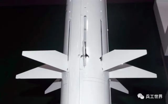 尾部为×型布局的4片折叠舵翼。弹翼、舵翼分别向前折叠折入导弹弹体,装入发射筒内,实现发射筒小型化。发射时,导弹出筒,弹翼、舵翼分别快速展开到位,为导弹提供相应的气动升力、控制力。