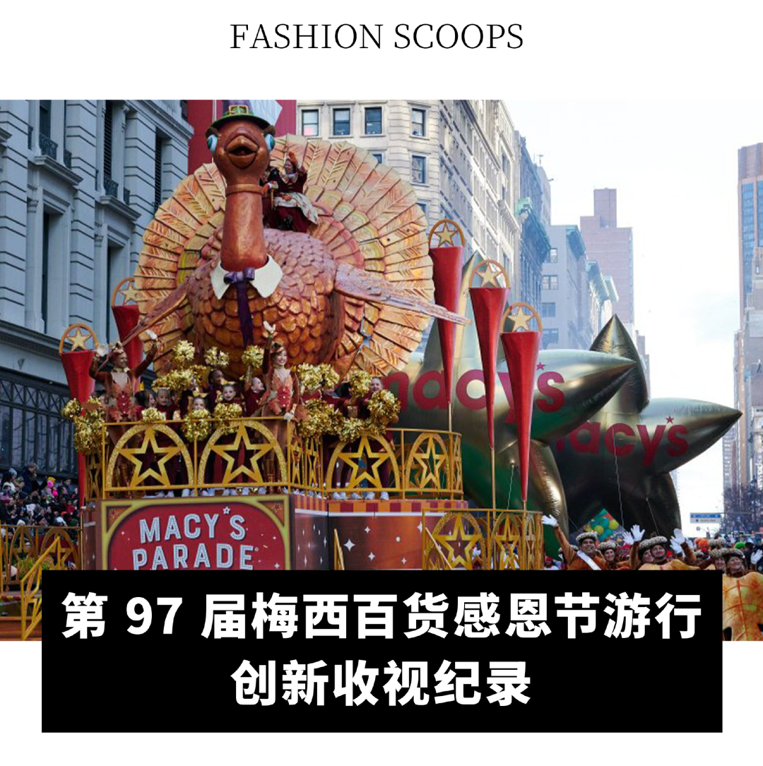 据悉,第 97 届梅西百货感恩节游行创新收视纪录,共计有 2850 万观众观看。据梅西百货发言人称,今年的节目由 Cher 和 Jon Batiste 担任表演者,在年龄段为 18 至 49 岁的观众中获得了 7.2 的收视率,同比增加了 6%。此次游行的盛大举行使其成为年度所有电视类别中最受欢迎的娱乐节目。(Juju)WWD