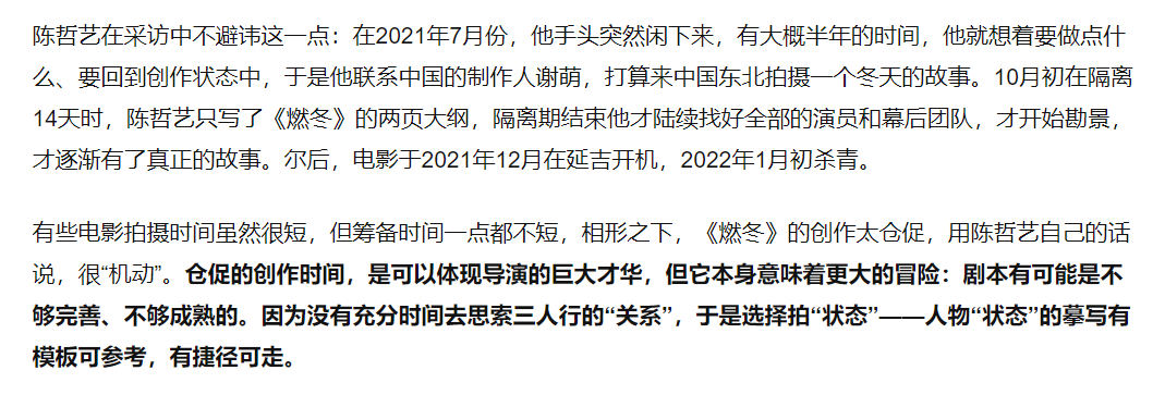 这种回旋镖现在也旋到了《燃冬》身上,从抽象乐子到引起讨论,现在很多人都觉得《燃冬》拍的不错,大家误解了它。